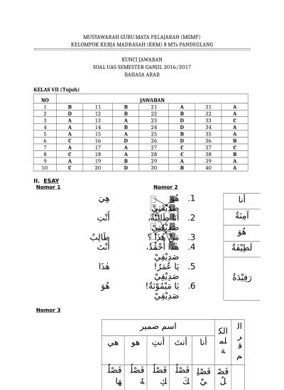 Kunci Jawaban Bahasa Arab Kelas 8 Kurikulum 2013 Semester 2 / Soal Dan Jawaban Pat Bahasa Arab Semester 2 Kelas 8 Mts Sesuai Kma 183 / Soal dan kunci jawaban pts semester 1 ganjil ipa smp kelas 7.